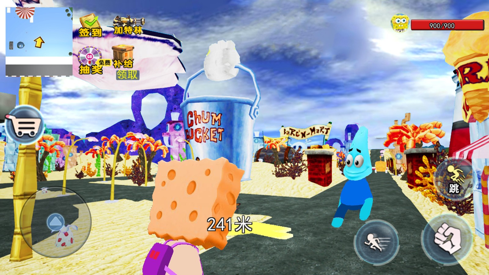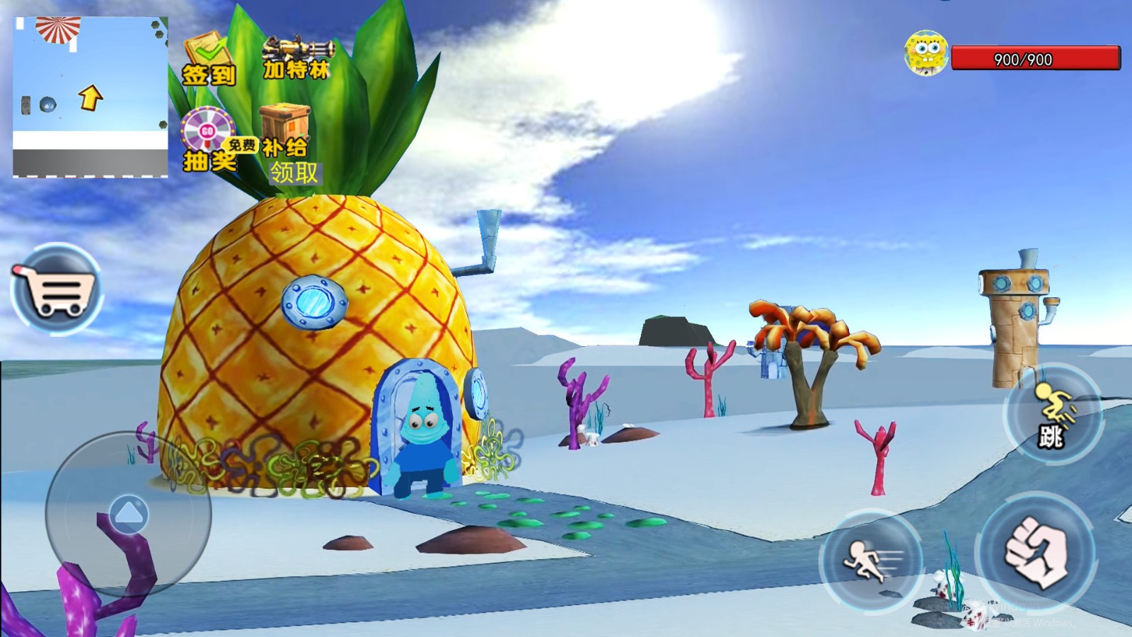 梦幻精灵派对,一款海绵宝宝主题风格的跑酷冒险过程游戏。梦幻精灵派对游戏中你将在比奇堡城市进行冒险,这里会出现非常多的敌人,你需要像大洋游侠一样,利用手里的武器来干掉他们。这里看广告就可以抽奖,得到新的道具,来挑战吧。