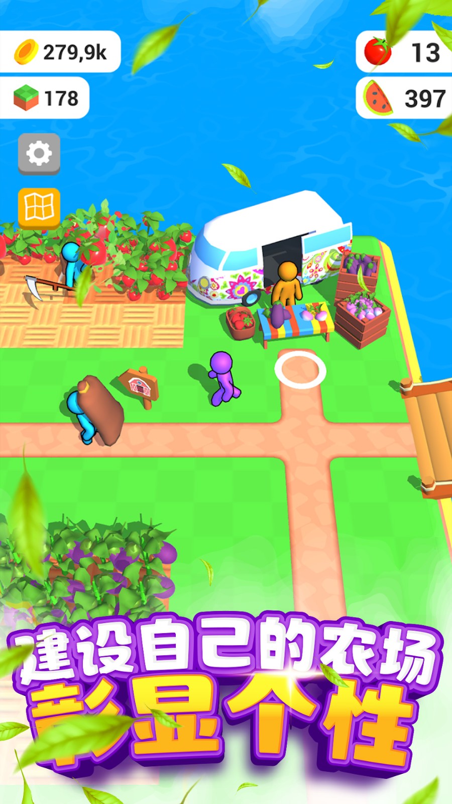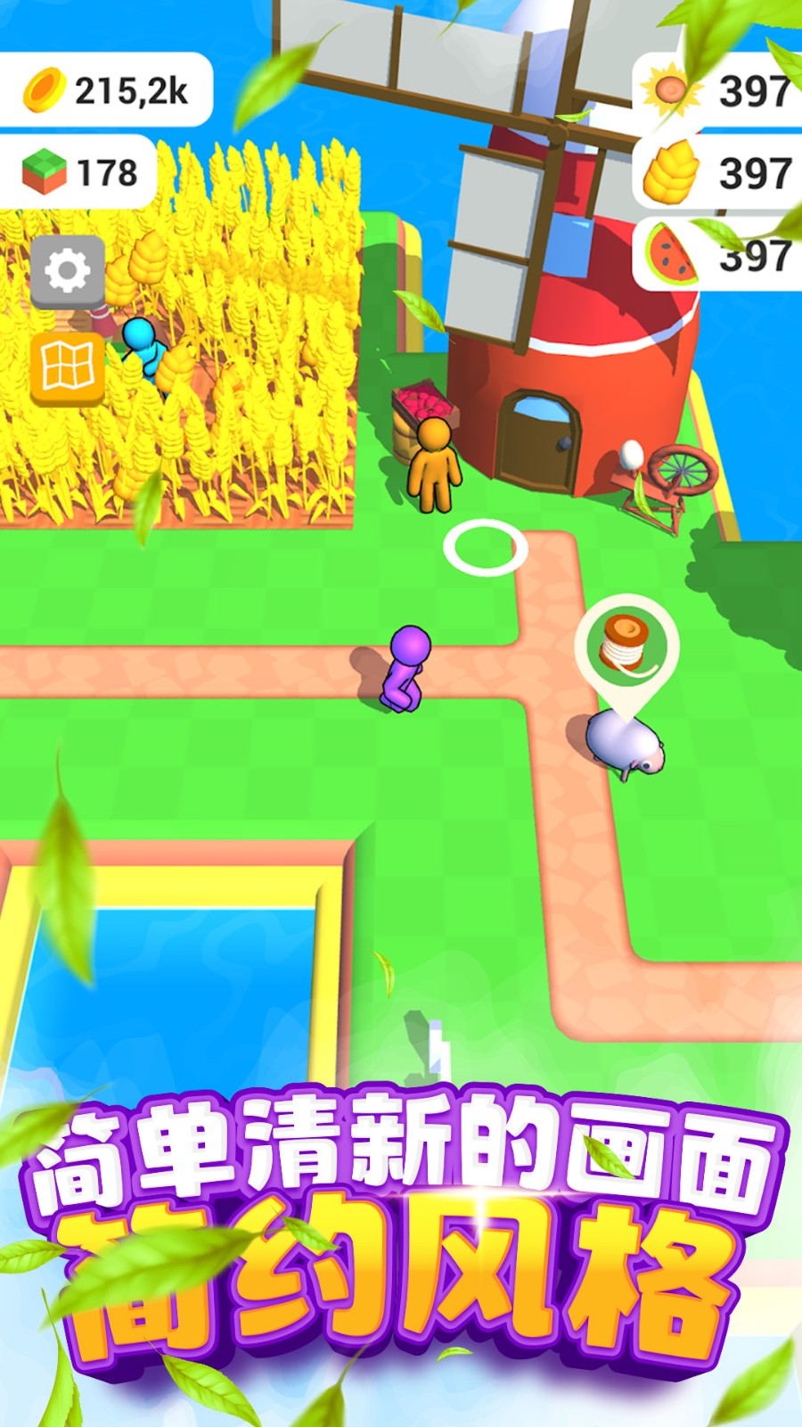 在这里,玩家需要收获更多的农作物来赚取收益,逐步扩大自己的农场场地,或者雇佣更多的员工共同完成收割工作,轻松提高工作效率,获得更多收入。他们还可以自由地种植苹果树、养鸡等,感受收获的喜悦。