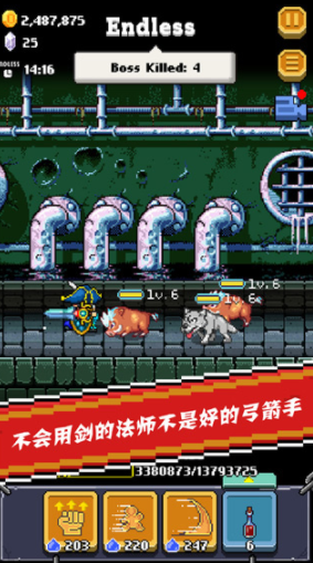 3.每关选择的技能效果可叠加,从剑士、弓箭手、法师、刺客中选择一个职业玩就可以了。