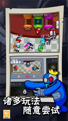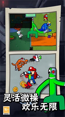 1.控制角色在场景中进行探索冒险,完成阵营任务,躲避随时会出现的彩虹朋友,赢得最终胜利。