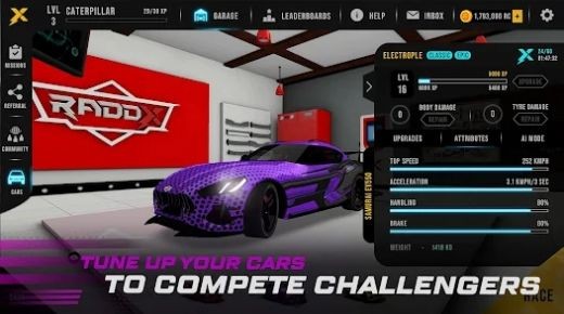RADDX游戏是一款赛车竞速类手机游戏,在RADDX游戏内玩家们将驾驶我们的各种车辆,开启一场刺激的驾驶之旅,解锁更多的稀有车辆,在这里有着海量的豪礼,获取更多的车辆配件,给予我们的赛车进行改装,加入到我们的赛事之中,成为最强的赛车高手!