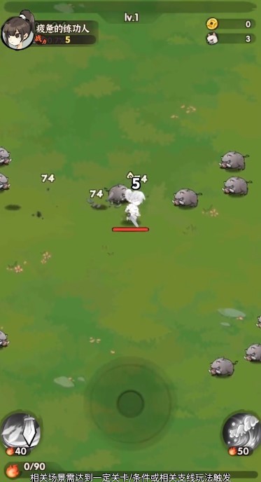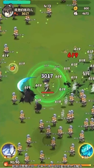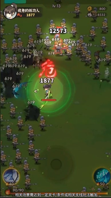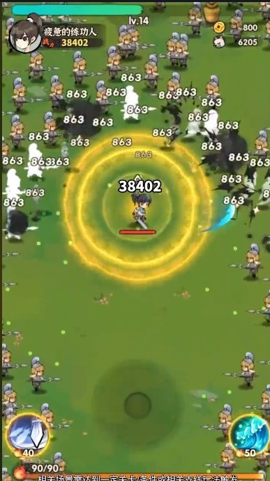 2、提升自己的技能点数,操作着人物走来走去就能清怪了。