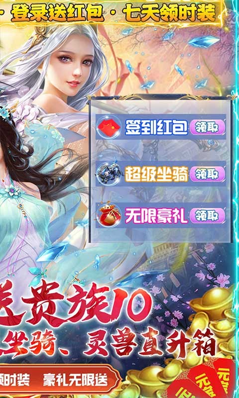 游艺传奇直送贵族10福利开启,真充奖励很多,玩家七天就可以领时装,大量的装备获得,游艺传奇游戏里的任务很多,闯荡不同的仙侠大陆,通关可以获得豪华的奖励,任何坐骑、灵兽可以挑选,签到送红包,在热血劲爆的江湖上斩杀妖魔。