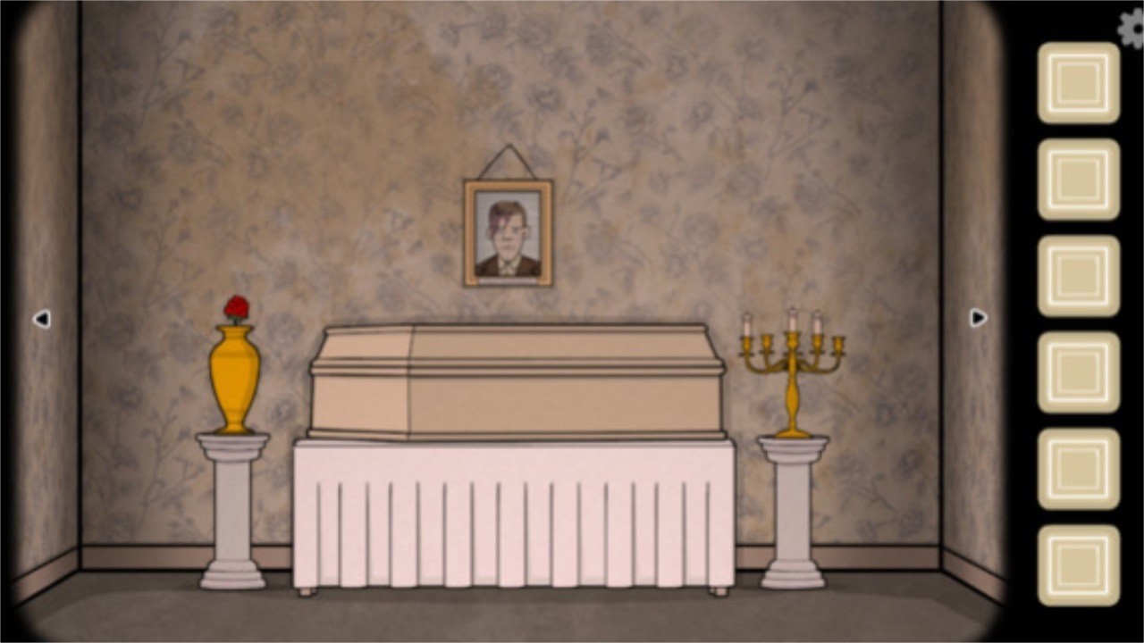 点击棺材旁边的花瓶会摔落,移开花瓶碎片找到【钥匙】。