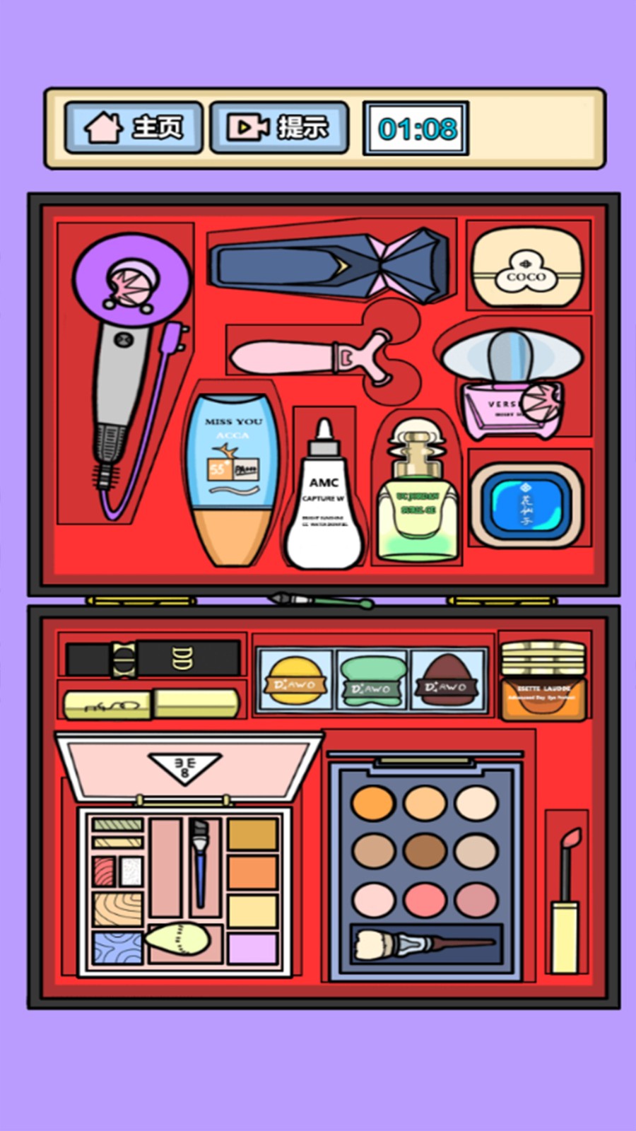 小游戏大作战,一款玩法不错的益智休闲解压收纳主题游戏。小游戏大作战游戏中玩家可以收纳更多的行李和物品,将有限的空间最大利用化,这里还有很多的场景可以选择的,比如厨房,化妆箱,衣柜等等。非常考验玩家的逻辑操作哦,来挑战吧。