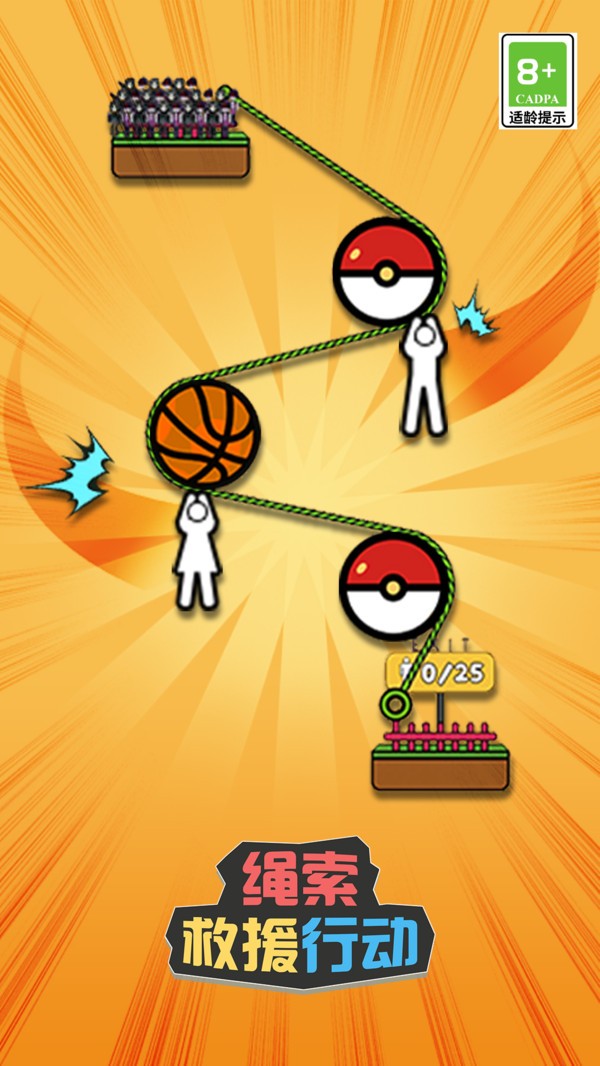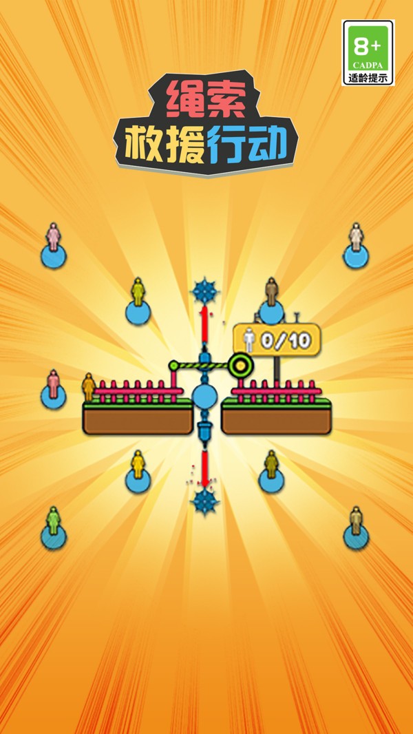 这是一个非常有趣的益智游戏,在游戏中你可以体验丰富的闯关方式,每一关都有巧妙的场景设计,你要用绳索解救被困人员,让大家快速脱困,完成一系列烧脑的谜题,掌握所有使用绳索的技巧,你要利用现场的各种装备,发挥你的奇思妙想来完成救援任务,每一关都能带来欢乐。