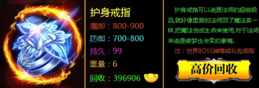 3.复活戒指、护身戒指、麻痹戒指,通通高价回收,所有属性加成直接拉满。