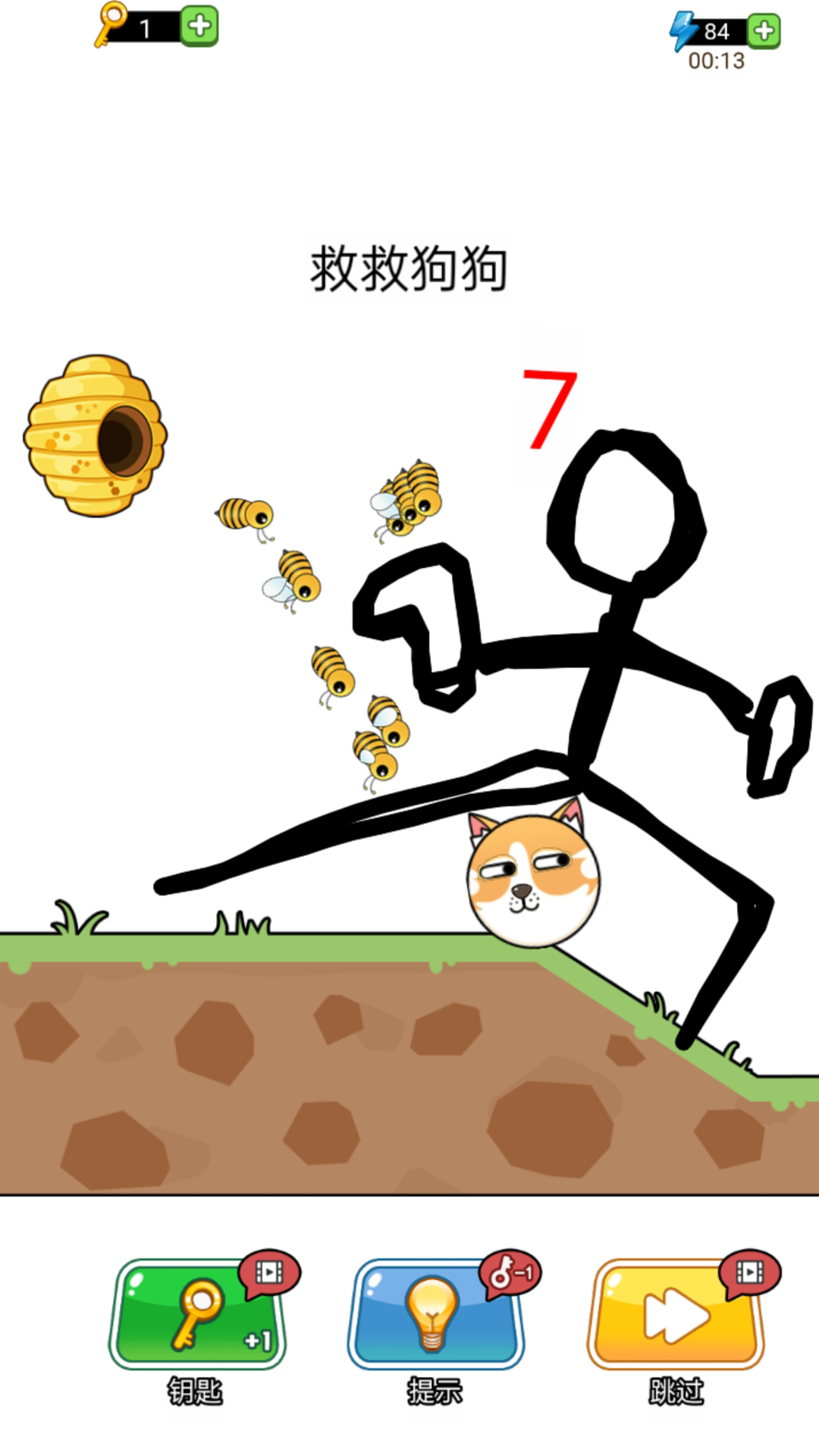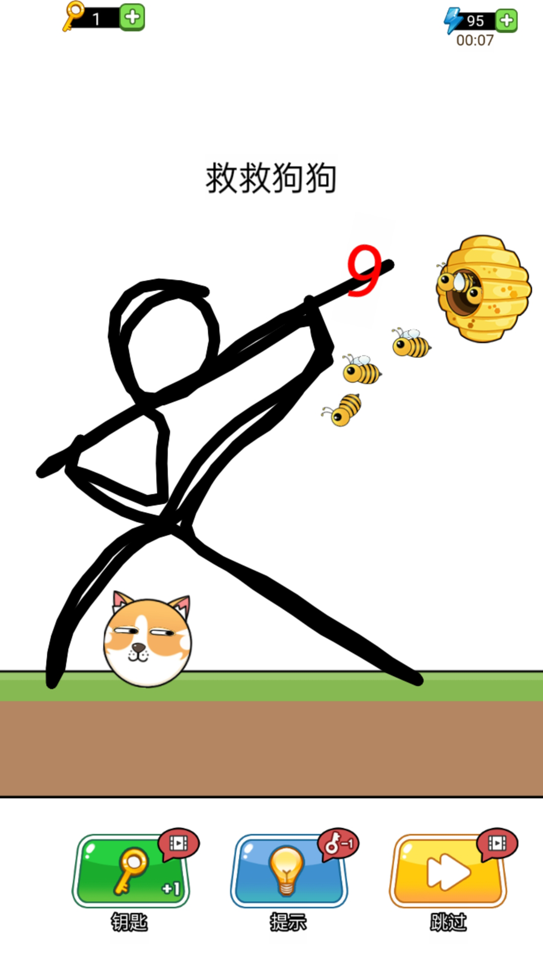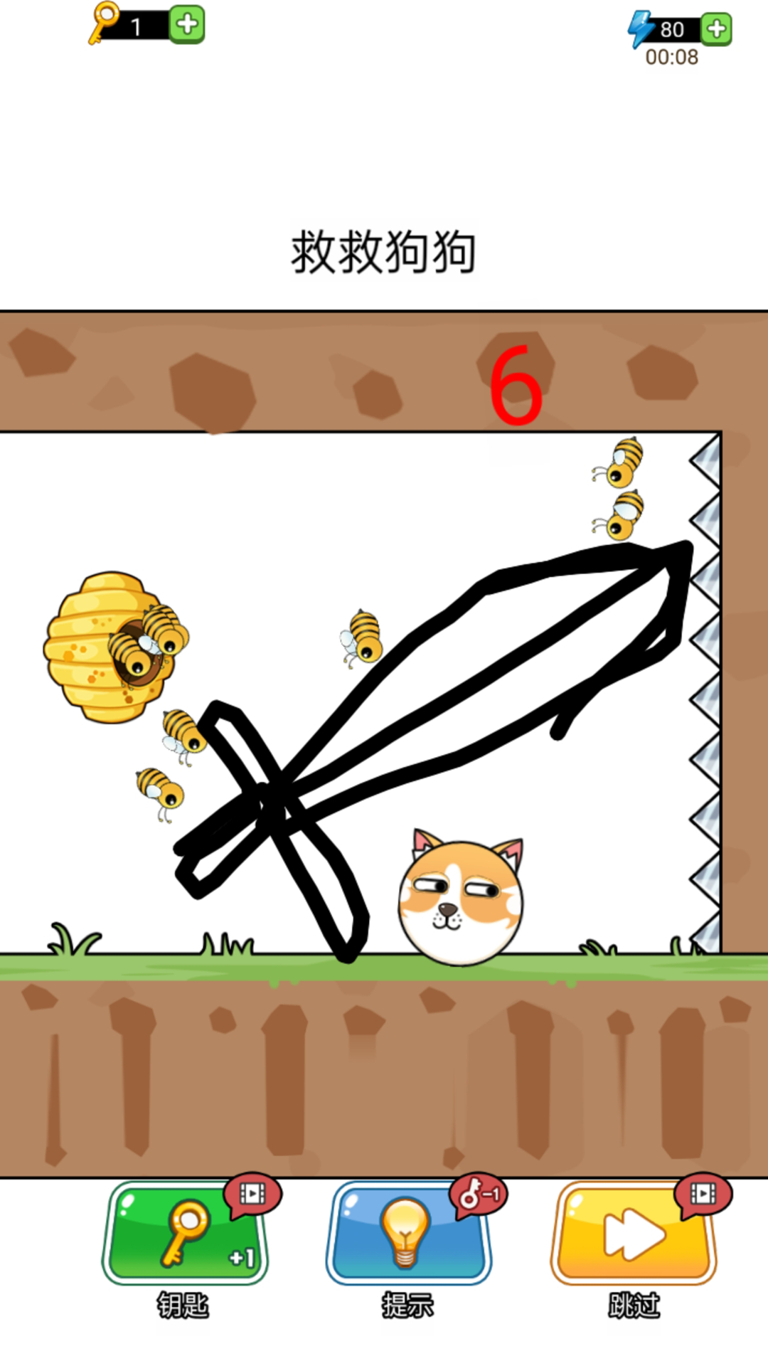 2.蜜蜂群就是喜欢把狗蛋蛰的满头是包,玩家需要动脑筋,为狗狗画一条线来阻隔。