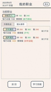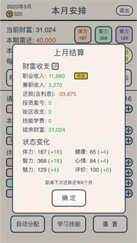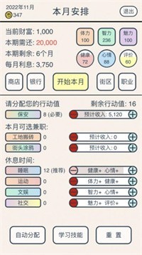 1、你将通过在游戏中工作来还钱,你可以选择不同的职业来获得金币,学习更多的技能来帮助你还钱。