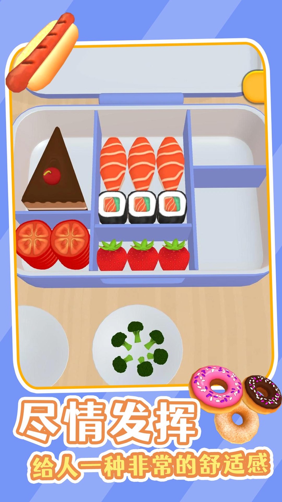 3.操作非常简单,只需要点击放置即可,在美味的便当中快速进行游戏,轻松又解压。