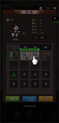 1.在不同的副本中进行冒险挑战,完成关卡获取装备,将相同的装备进行合成,获取全新装备。