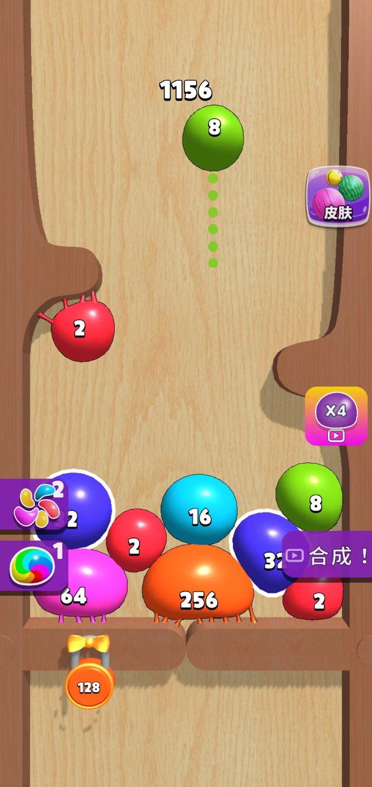 2.合成相同数字的泡泡不断扩大泡泡上的数字,合成的最大数字就是闯关积分。
