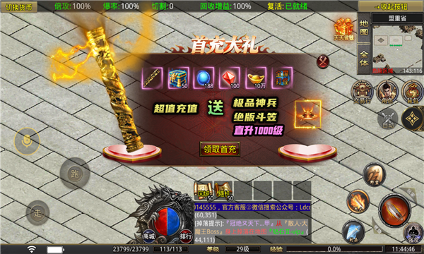 经典的复古传奇玩法,让你体验这款复古传奇游戏中最经典的玩法,随时可以在游戏中冒险。更多的挑战将在游戏中逐步开启,让每一位玩家都能玩得开心,体验最酣畅淋漓的战斗冒险。