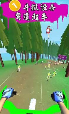 1.这个跟拟真的自行车游戏不同,跳跃骑行时用第一人称的卡通风格,非常有趣。