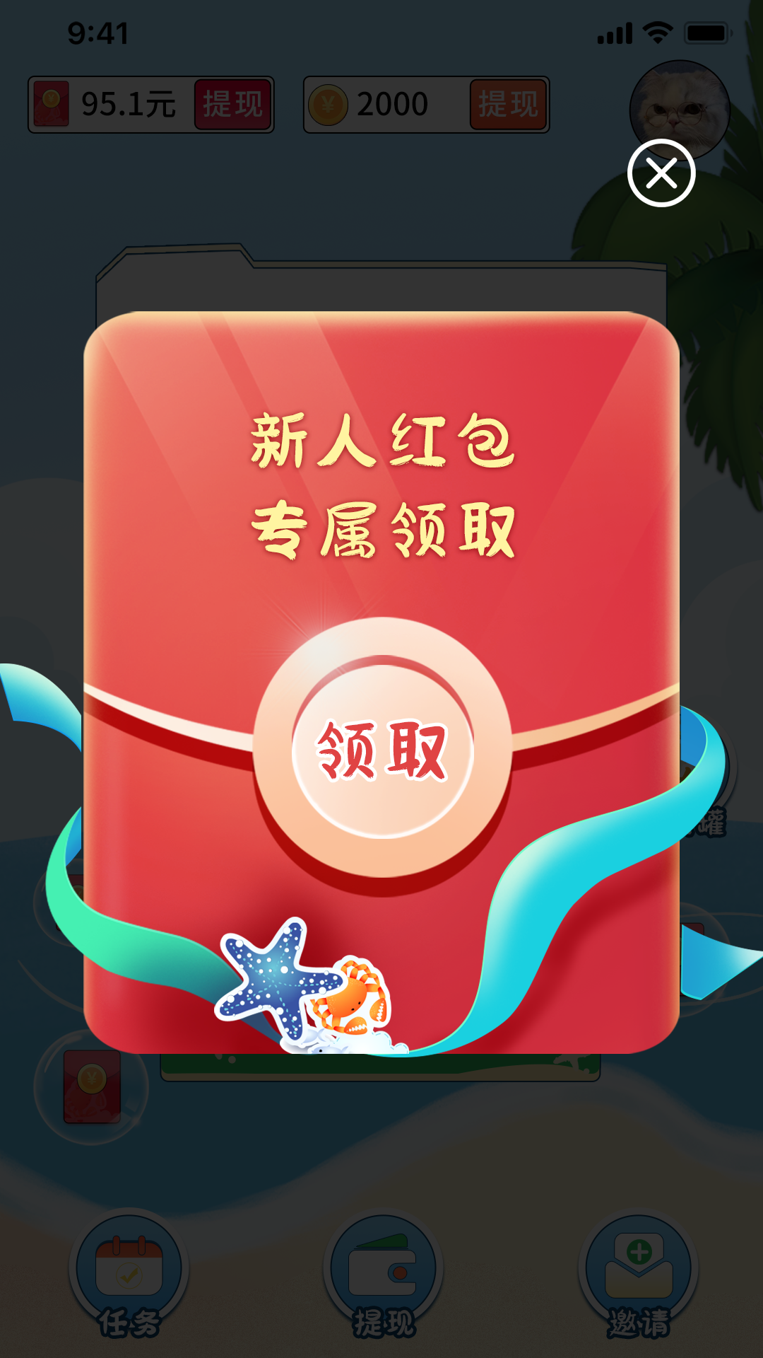 1.新人上线就可以直接领取一个新人专属大红包。