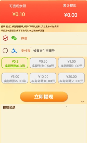2.最低满0.3就可以提现,每天都能赚到很多零花钱。