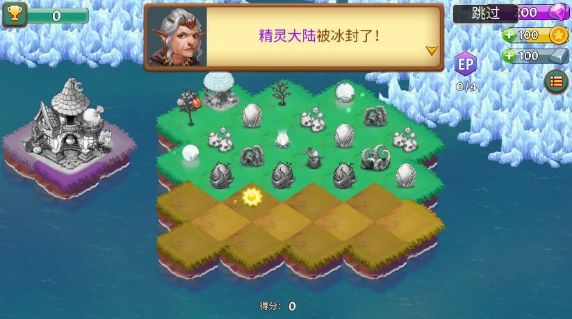 2.广阔的精灵大陆被冰封了,通过合成火堆不断融解才可以还原地貌。