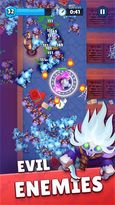 1.进入游戏开启割草挑战,击败敌人进行升级,获得随机的装备和道具,提升你的战斗力,完成更多任务。