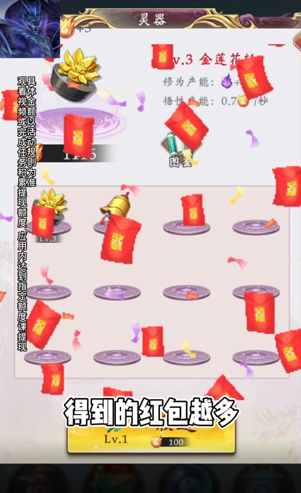 2.灵器等级越高就能提高悟性和修为,每次解锁新图鉴可以获得红包。