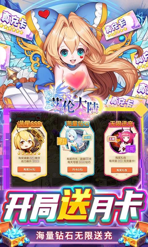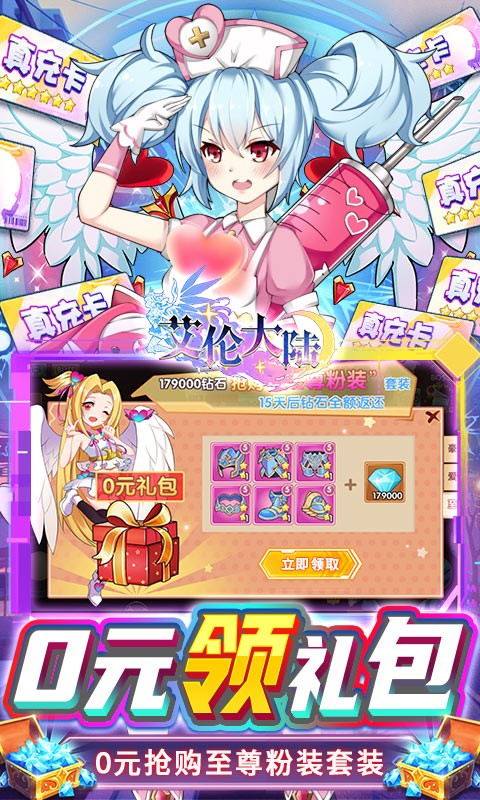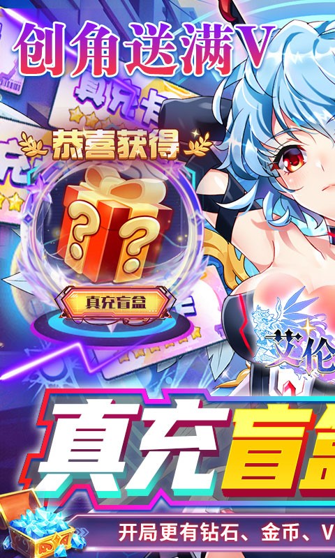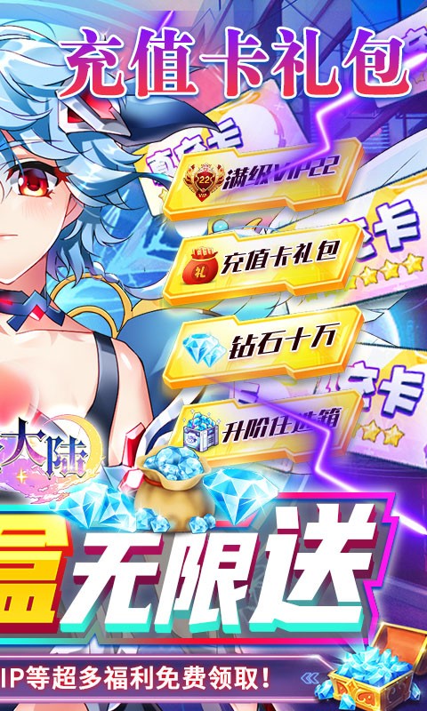 艾伦大陆送充值盲盒是一款二次元福利手游,玩家登录艾伦大陆送充值盲盒就能领取各种福利,上线就送海量钻石、金币以及豪华满级VIP,还送月卡、真充盲盒等等,更有0元购直接获得粉装套装,超值福利免费领,钻石、充值无限送,快来领取你的满星SSR。