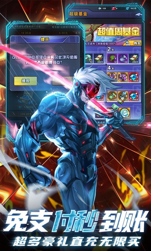 上线就送10亿元宝,登录在线还可抽取提现点,礼包直充买不停,不花钱也成神!打金永无止境,忍者手游巨作《侍忍者(提现点免充)》强势来袭,超清画质,特色系统,多样玩法,海量装备给你前所未有的刺激体验。击杀BOSS以及挂机无限掉直充卡,0氪畅玩不是梦!创角直升满V,天天送真充,直充特权免费拿!免费首充即送炫酷时装和超强BUFF,史诗装备等!还有全新活动,新增各种神级伙伴等着你!!