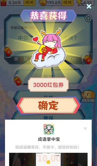 1.答对题目就可以赚红包,每次答对都能领取红包,答的越多赚的越多。
