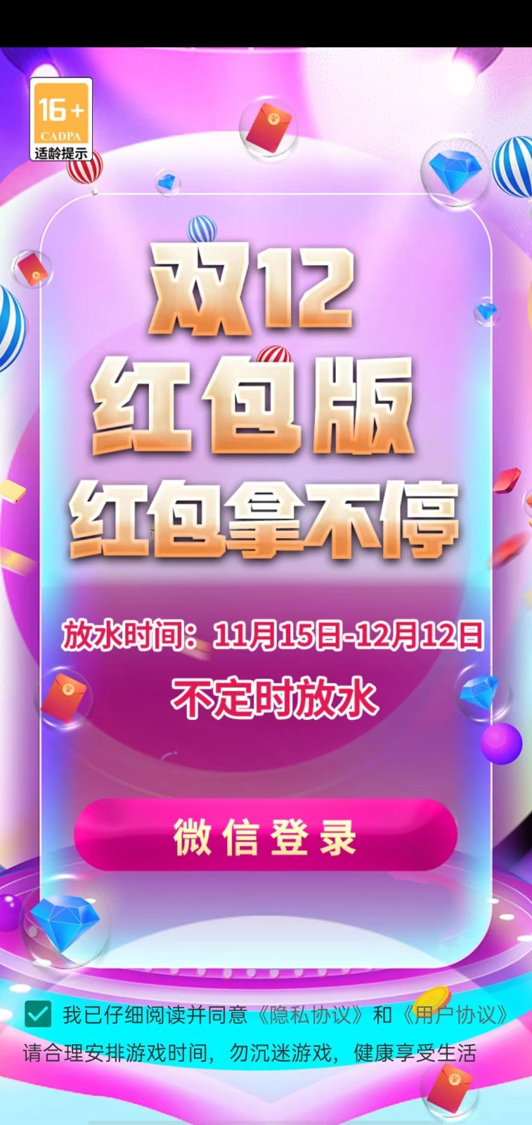 1.游戏每天凌晨都会放水发放大量红包,而且在双十二之前的这段时间也会不定时放水。