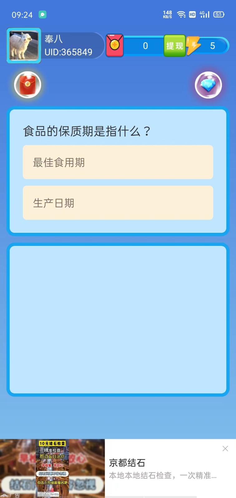 2.点击题目上方的气泡红包,需要观看视频广告才能领取,不过是有机会领取到大额红包的哈。