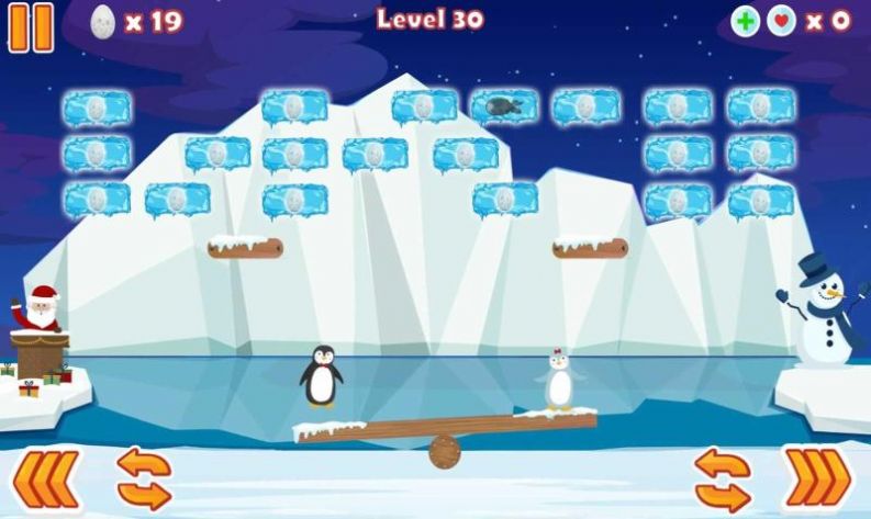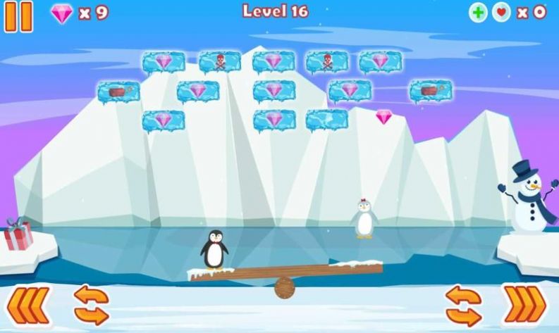 3、使用左右按钮移动跷跷板,注意不要让企鹅掉入该区域。