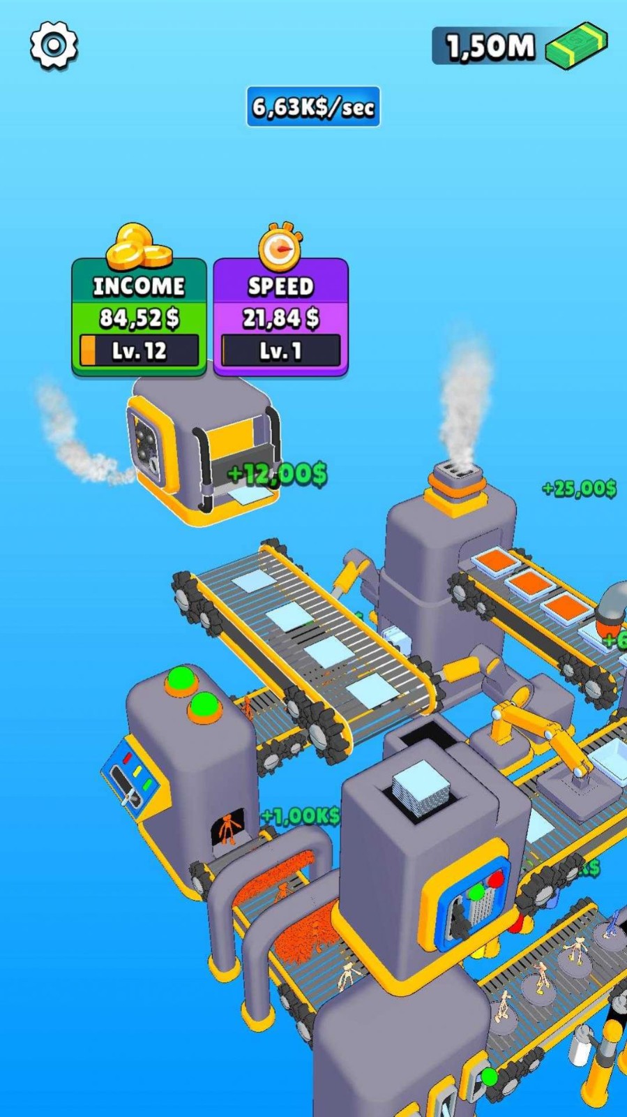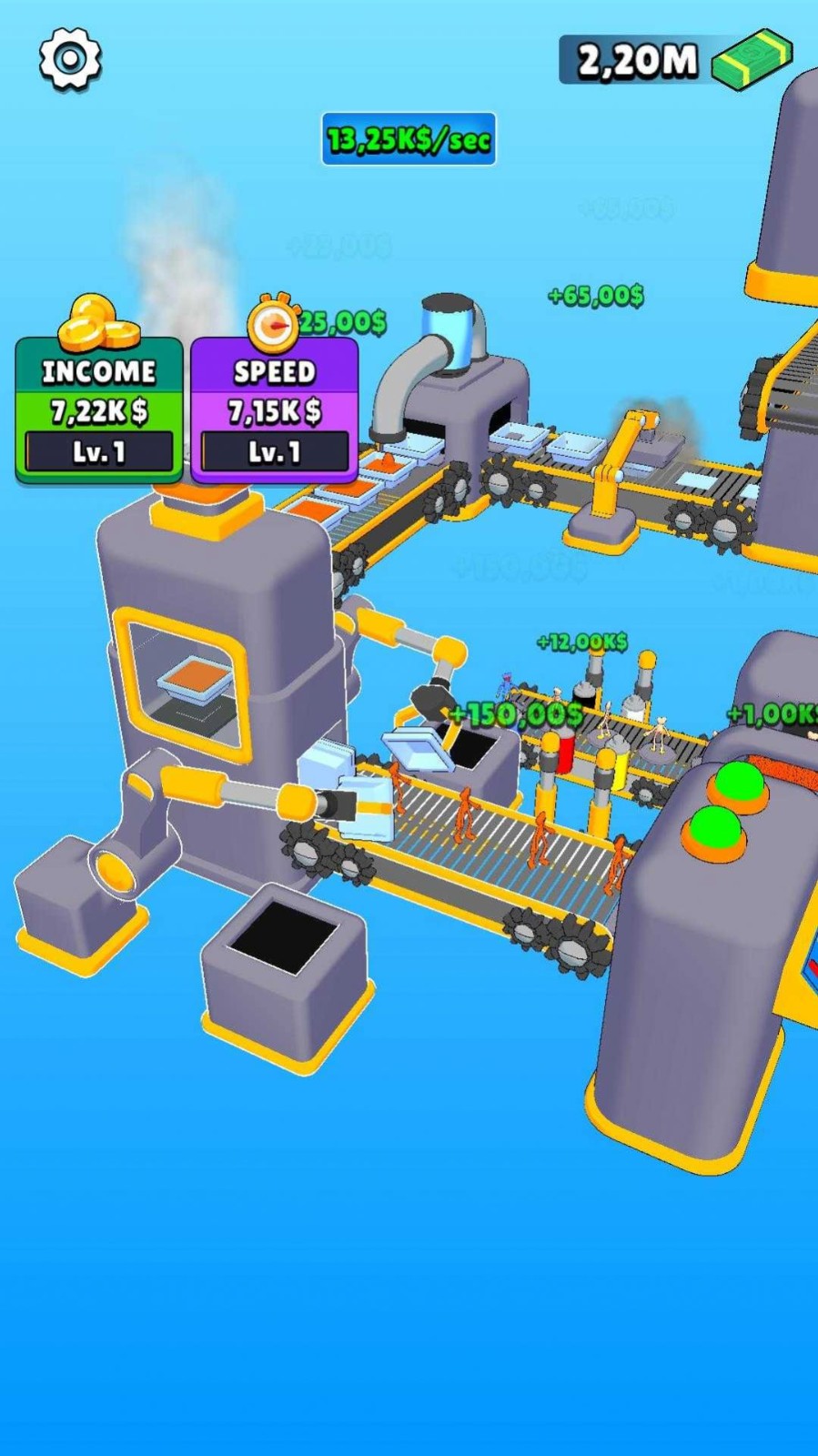 2.操作非常简单,放置即可,玩家可以迅速上手,购买机器、雇用员工并开始生产。