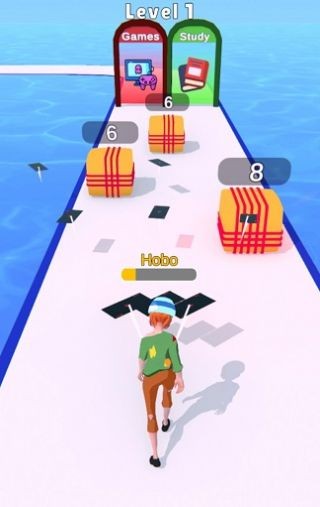跑酷闯关,拾取钞票,变富。