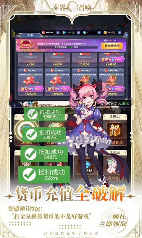 零界召唤代金券直充是一款二次元MMORPG手游,零界召唤代金券直充中有超多伙伴等你来召集,丰富的冒险剧情和任务等你体验,上线就送千元充值,解锁GM修改器,还送绝版龙魂七彩祥瑞,开局就能领取代金券直接全额抵扣免费享受特权。