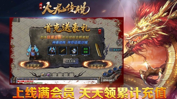 鸿图火龙传说手游是一款单职业传奇复古手游,在鸿图火龙传说手游内感受超高画质,登录就送会员礼包,丰厚的游戏福利,让你嗨翻全场,丰富的游戏职业角色,专业的游戏团队,首冲即可获取强力神装,超高爆率,为你进行的呈现!