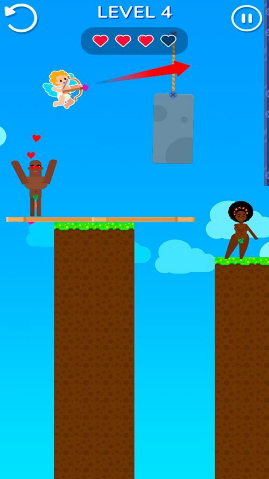 2.需要通过一定的观察和智慧,利用弓箭突破关卡中的机关,让男女相遇。