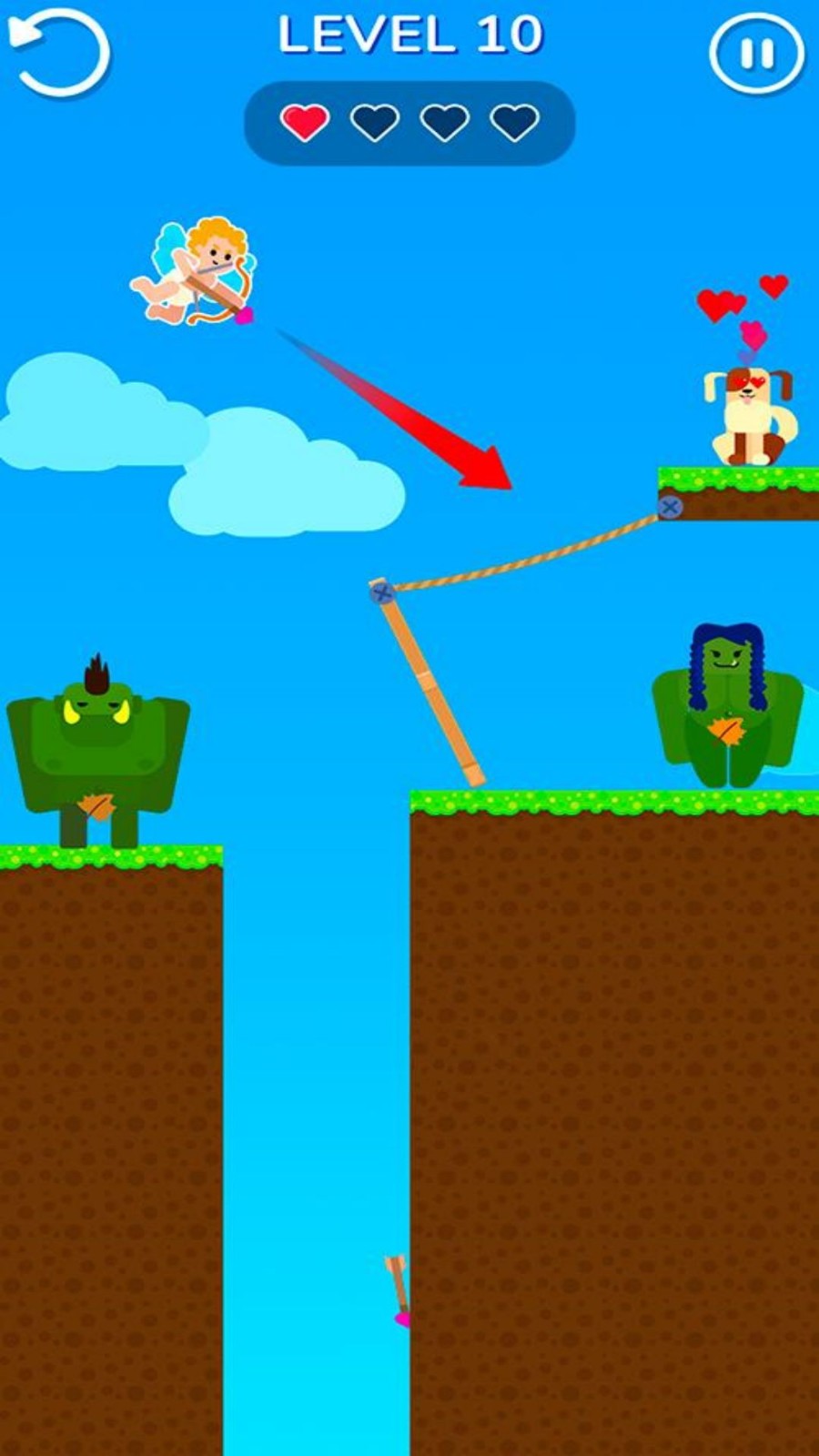 1.丘比特养成,成为最强弓箭手,完成你的撮合业务,将关卡中的男女撮合在一起。