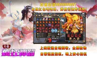 天侣疯狂神器手游是一款热血传奇冒险题材手机游戏,在天侣疯狂神器手游内开启你的精彩冒险,高清的3D游戏画面风格,完成不同的主线任务,强大的游戏BOSS,赢取属于我们的胜利,炫酷的游戏坐骑系统,收获更多的战利品!