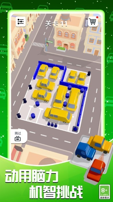 3.随着关卡难度的增加,你会遇到很多烧脑的任务,快速解决所有停车问题。