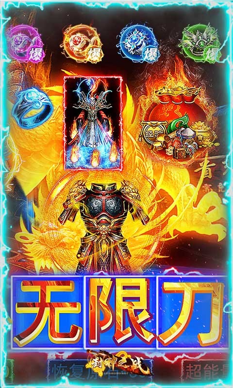 《封神之战(群吸真无限刀)》是本年度,最良心的超爽无限刀版本传奇手游,为了给广大的玩家年底送福利,此版本的福利可谓是前所未有,开局送切割神器砍怪一刀一个,暴风攻速没有任何文字陷阱,上线就是纯满攻速,迅猛如风,恐怖如斯;更送BUG神技【全屏吸怪】群体雷电术,懂得都懂;任何材料货币,小怪均会掉落,刷就完事了;养成浅显易懂不搞复杂,随便点点直接超神;此等爽游,刀刀烈火,还不快来!!