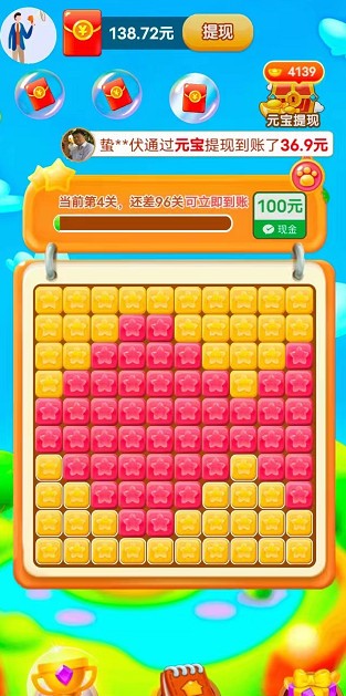 2.当完成指定数量的关卡数量后,就能直接提现现金红包,真实可以到账,完成就能领。