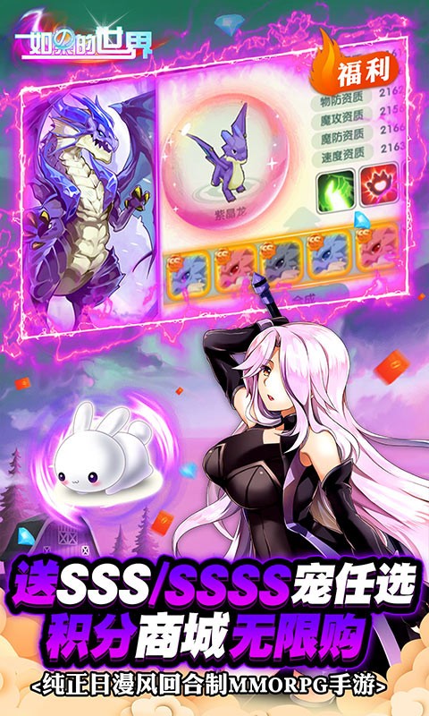 如果的世界(GM养龙送充)是一款超高品质纯正日漫风回合制MMO手游! 【可能是BT游戏品质天花板】 神雕侠侣、魔力宝贝团队精心制作,传承回合制玩法精髓,纯正日漫100%还原,多次获得App Store精品推荐,畅销榜TOP9,苹果力荐的爆款回合制RPG巨制! 【可能是BT游戏最强福利代表】 积分商城SSS/SSSS宠全免费;爆爽GM商城1钻无限购,珍稀好物天天买到爽;无限资源永久免费无限领;每日登录送真充、主线任务送真充、任意打怪掉真充、每日活跃抽真充,真正的送无限真充! 【可能是BT最好玩的回合制MMO】 继承并发扬回合制的玩法精髓,师门、抓鬼、宝图、家族、运镖... 所有经典元素全面升级!打造萝莉、御姐、元气娘、萌叔、高冷男、热血少年六大个性主角,任意调教、双重培养,满足你的各种幻想。 海量萌宠不断升阶进化,炫酷外形一路变变变!