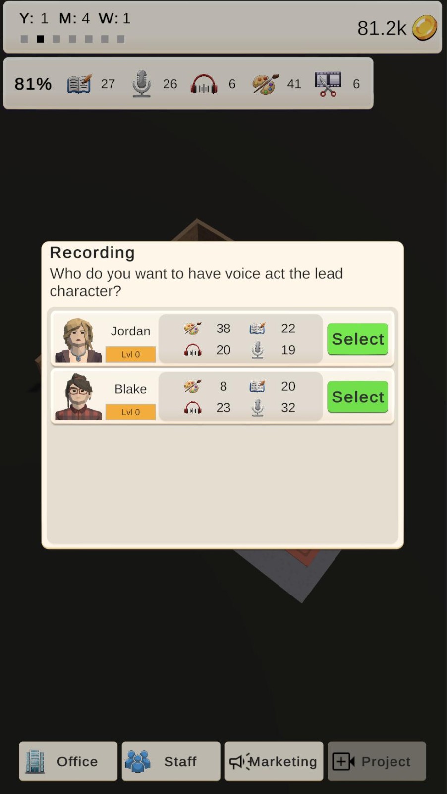 动漫工作室,一款卡通风格的模拟经营类型游戏。动漫工作室游戏中玩家将打造一个全新的动漫工作室,这里还有很多的动漫题材可以制作的,招募员工来为你工作,满足更多的人群观看,增大他们的收益,来获得更多的奖励哦。想玩的朋友就来试试吧。