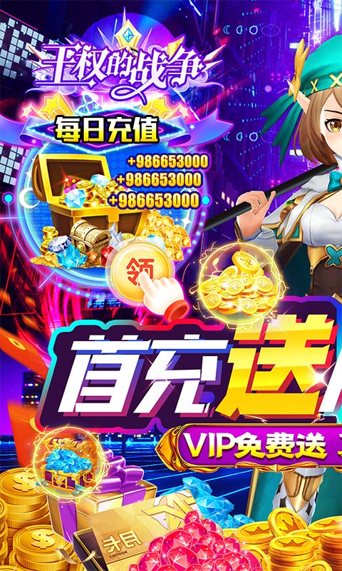 1.首充任意金额送VIP8、连读七日登录送满VIP12