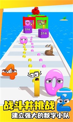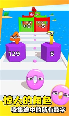 1.控制数字在不同的关卡中进行跑酷挑战,遇到选择路口时,需要提前选择合适的方位,才能获得奖励。
