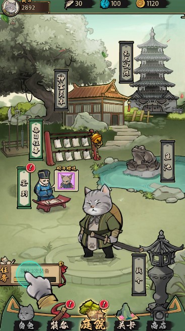 2.各种武侠形象的猫咪角色供玩家选择,完成登录任务还能直接送猫咪角色。