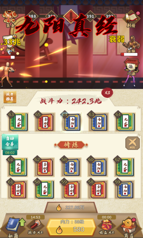 2.解锁各式各样的武林秘籍,并且加以学习,不断升级,变得更加强大。