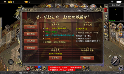 1.选择副本进行冒险挑战,完成相应的任务,获取强力的装备和道具,自由交易,兑换更多的元宝。