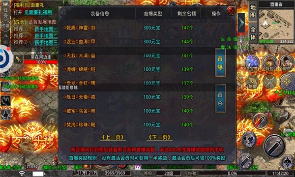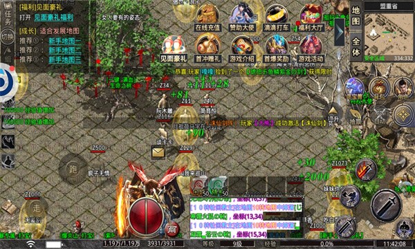 3.上线就送顶级装备,神级武器,多多元宝,还有忠心护主的上古魔兽。