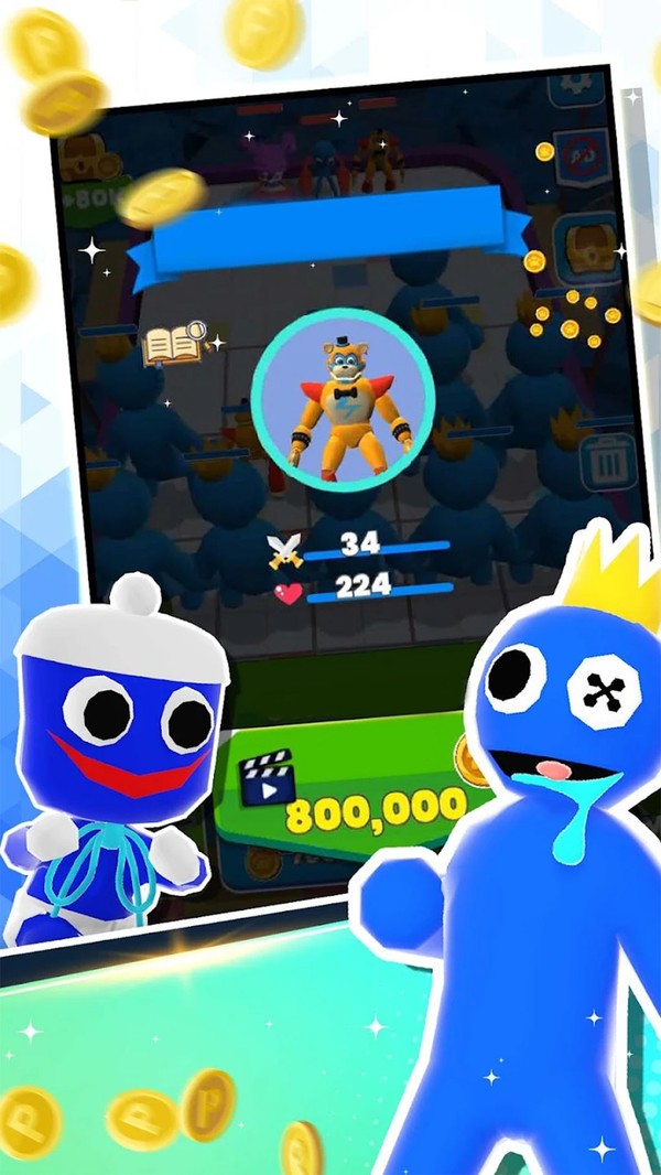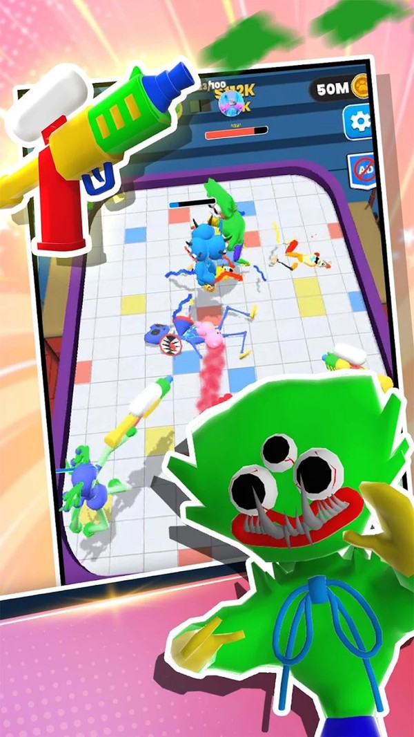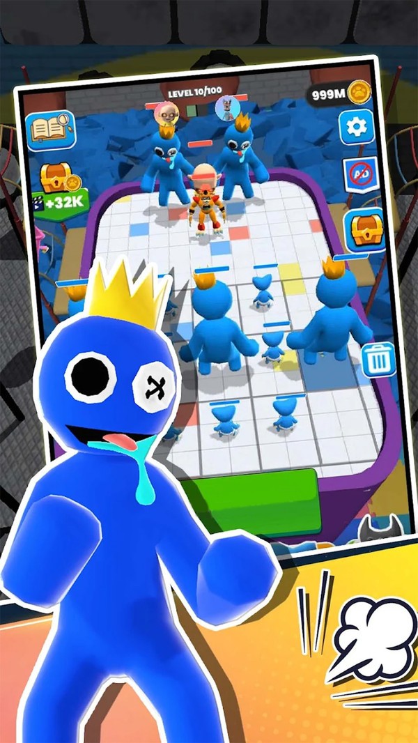 最强淘汰赛是一款策略合成游戏,在最强淘汰赛中有各种彩虹朋友可以出击,不同的怪兽有不同的攻击特性和能力,玩家通过合成的方式来提升怪物的能力,也可以购买新的怪兽加入战场,只有击败关卡中的所有怪兽和BOSS,才能成功闯关。