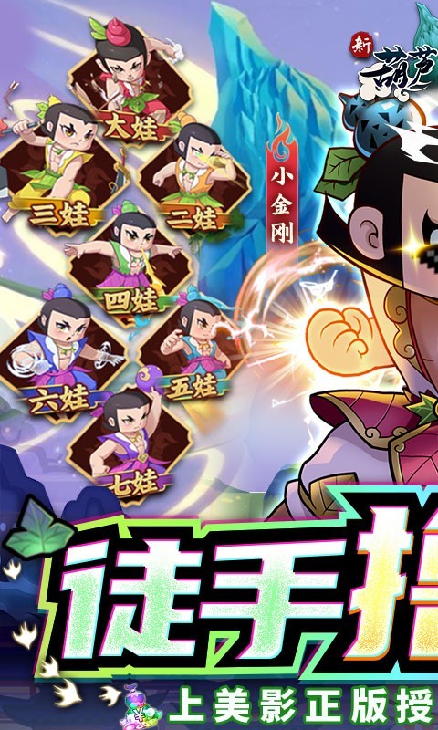 新葫芦兄弟送金刚撸万充是一款由葫芦娃正版授权的休闲放置手游,新葫芦兄弟送金刚撸万充按照原创动画剧情设定,唤起玩家童年回忆,游戏采取5V5竞技玩法,多种阵容任意搭配,上线还送万元真充大礼和满级VIP,登录还有T0伙伴和200抽,还能免费领取首充和现金点。