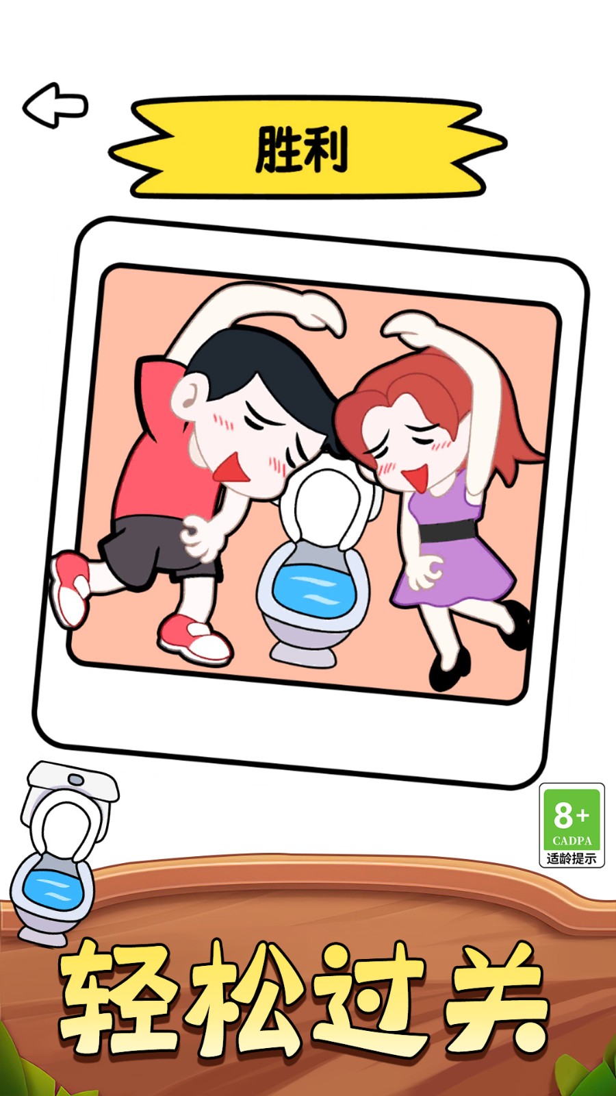 这是一个烧脑的益智游戏,画线帮助场景中的角色找到厕所,我们需要快点,否则这些小男孩和小女孩可能会憋不住,面对不同场景下的寻战略战斗,每一关都采用多种方式突破,玩家可以反复挑战,找到更好的画线解谜方式。